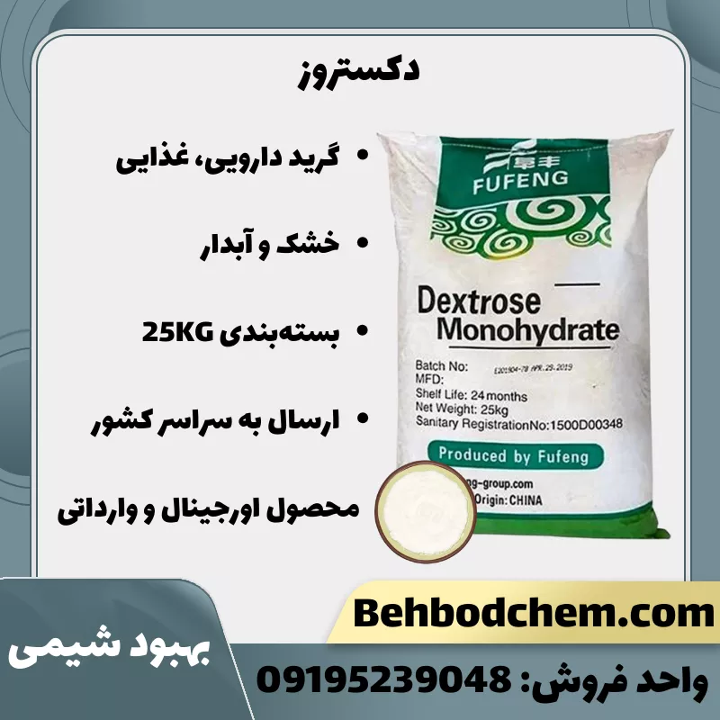 برای خرید دکستروز پودری خشک یا آبدار می‌توانید با کارشناسان فروش بهبود شیمی در تماس باشید. خرید دکستروز با قیمت مناسب به همراه آنالیز و مشاوره برای شما عزیزان امکان‌پذیر می‌باشد.فروش دکستروز آبدار