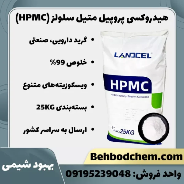 هیدروکسی پروپیل متیل سلولز دارای گریدهای خوراکی، دارویی و آرایشی و بهداشتی و صنعتی است. HPMC در بستهبندیهای ۲۵ کیلویی محصول کشور چین و آلمان در انبار بهبود شیمی برای فروش آماده میباشد.